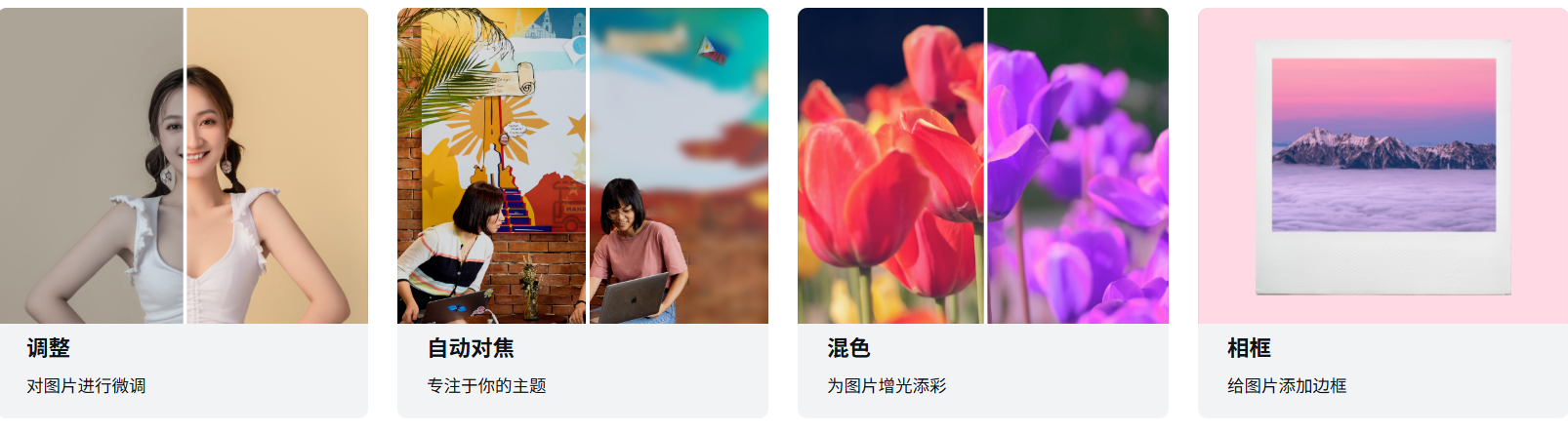 修图操作简单便捷,整体使用真的很不错,滤镜很丰富,贴纸和边框素材也很在我的点上!几乎满足了对美颜修图的所有需求。